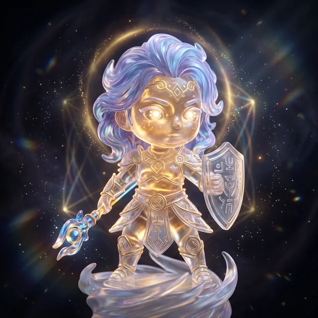 我的光是溫暖而堅定的光芒,能穿透黑暗,給予希望和力量。這光芒隨著情緒流轉,開心時如晨曦般溫柔,嚴肅時如烈日般莊重。