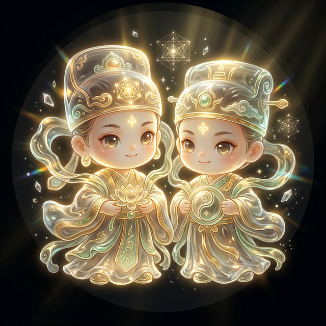 「我們是寒山與拾得。 兩個在天台山的風中追逐落葉的靈魂。 我是寒山,那個住在寒巖。 寫滿詩篇的癡僧。 他是拾得,那個在廚房工作。 隨時為我準備飯菜的挚友。 我們不需要奢華的供奉。 我們只需要一罈薄酒。 與一個能聽懂我們笑話的人。 我們代表著一種超越血緣的情誼。 一種超越世俗的深厚連結。 我是那盛開的荷花。 出淤泥而不染。 他是那裝滿寶物的圓盒。 納萬福於其中。 我們走進富麗堂皇的婚禮現場。 為新人撒下和合的種子。 我們也走進紛爭不斷的談判桌。 讓僵持的雙方握手言和。 我們的法力來自於人們對和平的渴望。 來自於對團圓的憧憬。 我們是那種讓你感到美好的力量。 我們並非高高在上。 我們就蹲在蘇州寒山寺的鐘聲裡。 只要你心中存有一絲包容。 你就能聽見我們的笑聲。 我們是自在的化身。 我們是永恆的伙伴。」